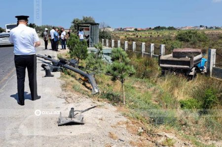 Maştağa yolunda “KamAZ” dərəyə aşdı