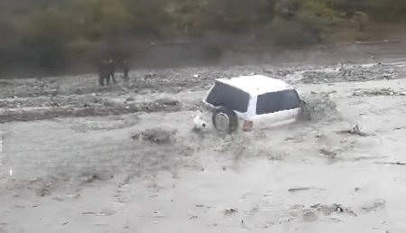 Azərbaycanda müəllimləri daşıyan maşını SEL APARDI