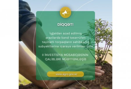 Azad edilmiş ərazilərdə kənd təsərrüfatı təyinatlı torpaqların icarəsi üzrə növbəti investisiya müsabiqəsi yekunlaşıb 13.03.2026 4
