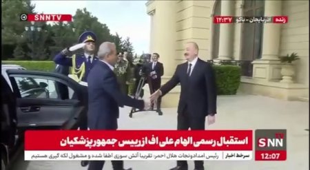 Azərbaycan Prezidenti İlham Əliyev İran Prezidenti Məsud Pezeşkianı qarşıladı.