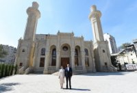 Prezident İlham Əliyev və birinci xanım Mehriban Əliyeva Nərimanov rayonunda “Cümə” məscidinin açılışında iştirak ediblər 20.04.2023 176
