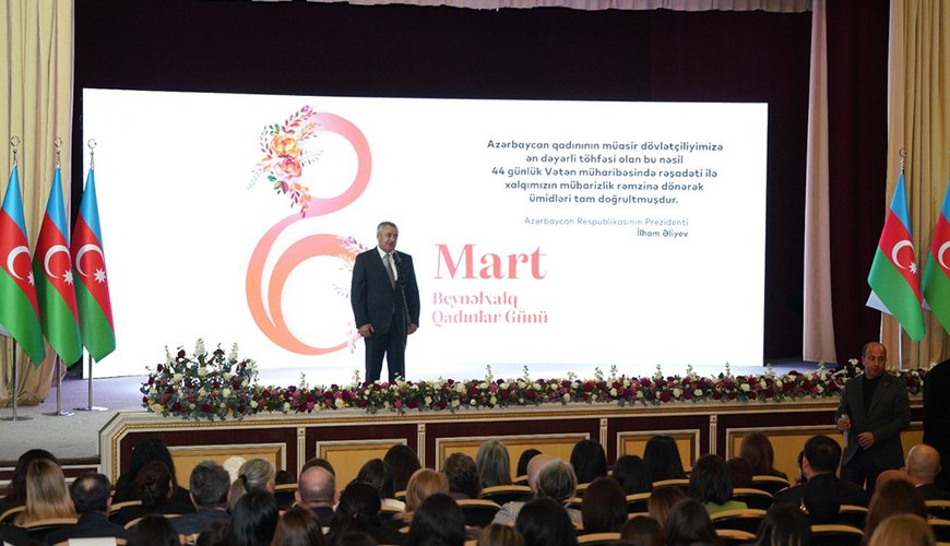 Tədbirdə Azərbaycan Prezidenti, Müzəffər Ali Baş Komandan İlham Əliyevin 8 Mart - Beynəlxalq Qadınlar Günü münasibətilə Azərbaycan qadınlarına təbriki səsləndirilib.