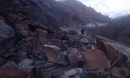 Yağan güclü yağışlar nəticəsində Naxçıvan Muxtar Respublikasının Ordubad rayonunun Pəzməri kənd avtomobil yolunun 24-cü kilometrliyində yolun hərəkət hissəsinə qaya parçaları tökülüb.